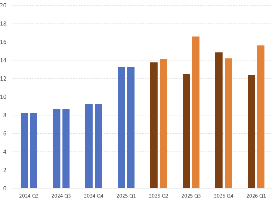 Check it.  At the start of 2025 Q2 earnings season, the actual profit growth forecast for the next four quarters is shown in the chart below by the dark red bars.  Rock solid in the 12-15% (I’m still puzzling on where everyone was getting the 5%ish growth estimates heading into earnings season.  C’mon!).  Where are we today coming out of earnings season with roughly 80% of companies having reported?  While companies typically revise their profit outlooks lower the closer the future draws closer to reality, they instead revised their already lofty outlooks higher as shown by the orange bars below to the 14-17% range.  Showtime at the Apollo indeed!